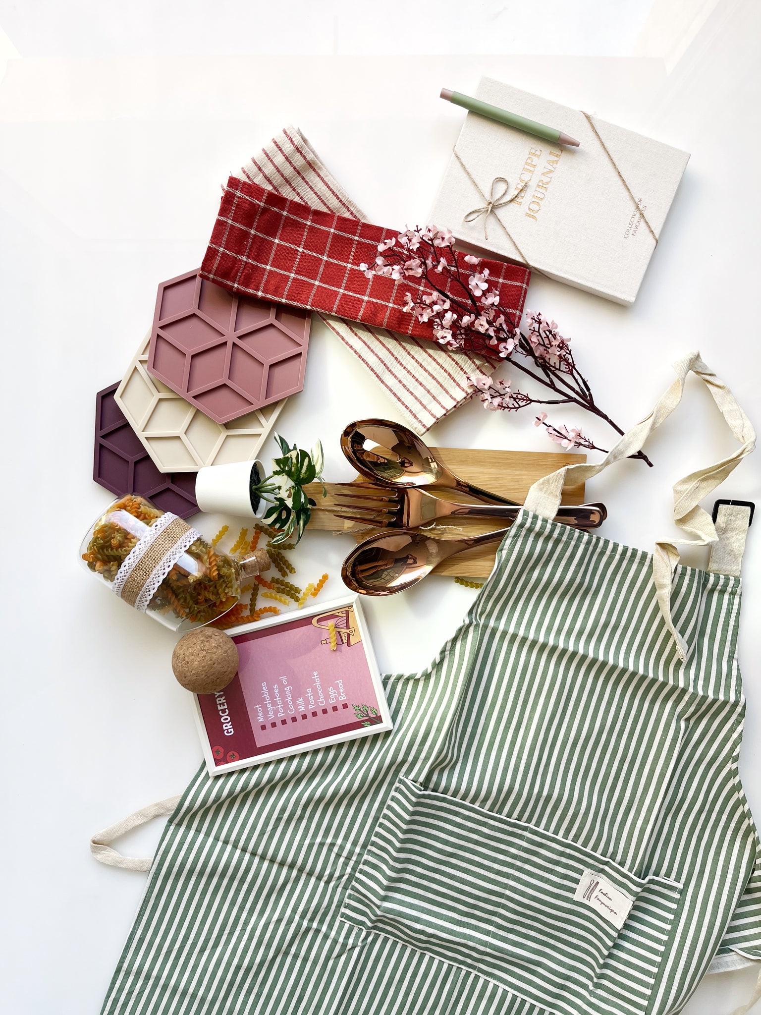 A beautifully curated set for those who love to cook and create. This basket includes stylish kitchen essentials and cozy touches to make every meal feel special — perfect for home chefs, food lovers, or anyone starting a new kitchen chapter.